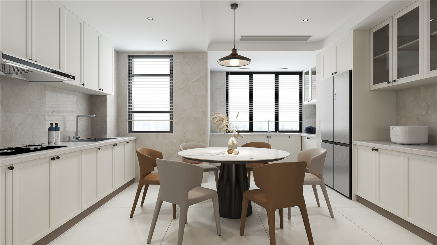 餐厅和洗手台连接,用餐之前洗手很方便。餐桌餐椅颜值高,餐椅使用舒适度很高。