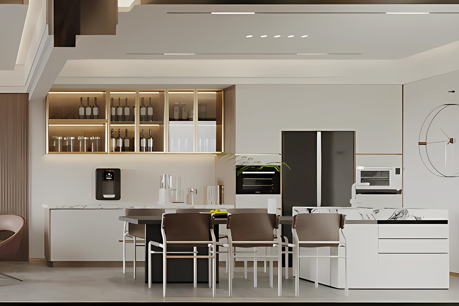2    餐厅设置操作柜,提升利用率,满足各种厨电的摆放。