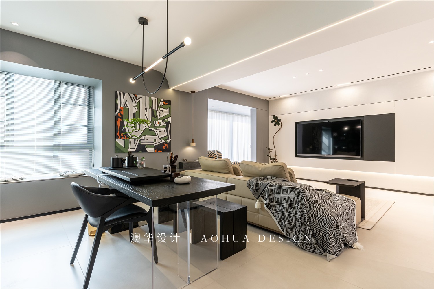 对于大横厅户型,可将客厅一分为二,划分出专属的书房阅读区。