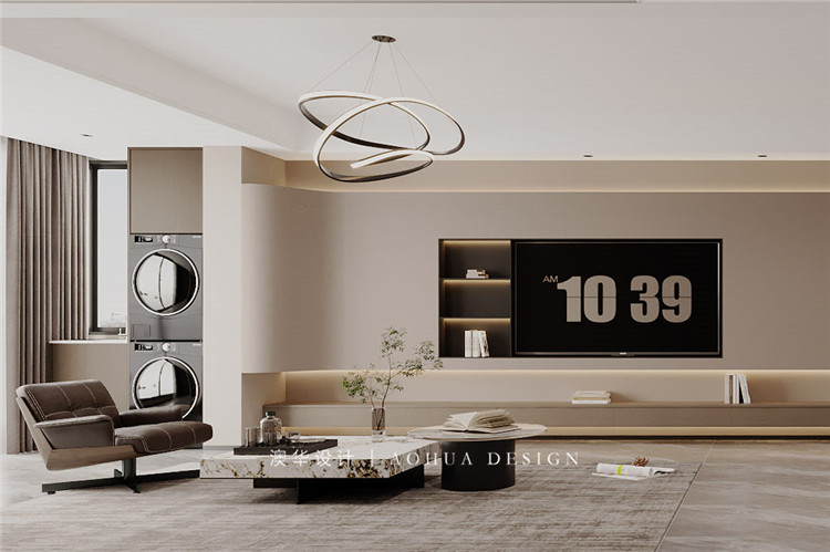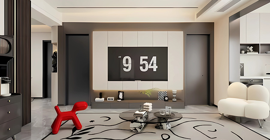 以承重柱为基点,向外延伸出地台与悬浮电视背景墙,兼顾美观性与实用性。