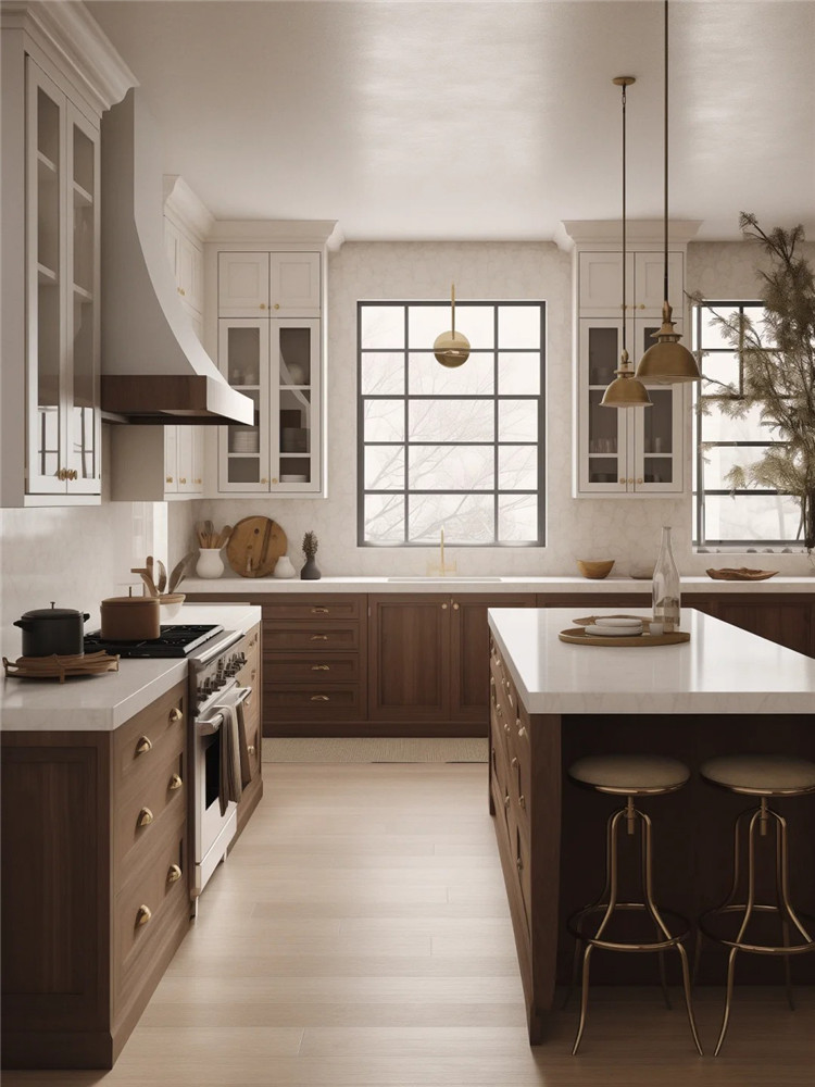 在厨房中设置一个或多个岛台,既可以作为操作台使用,也可以作为餐桌或休闲区。