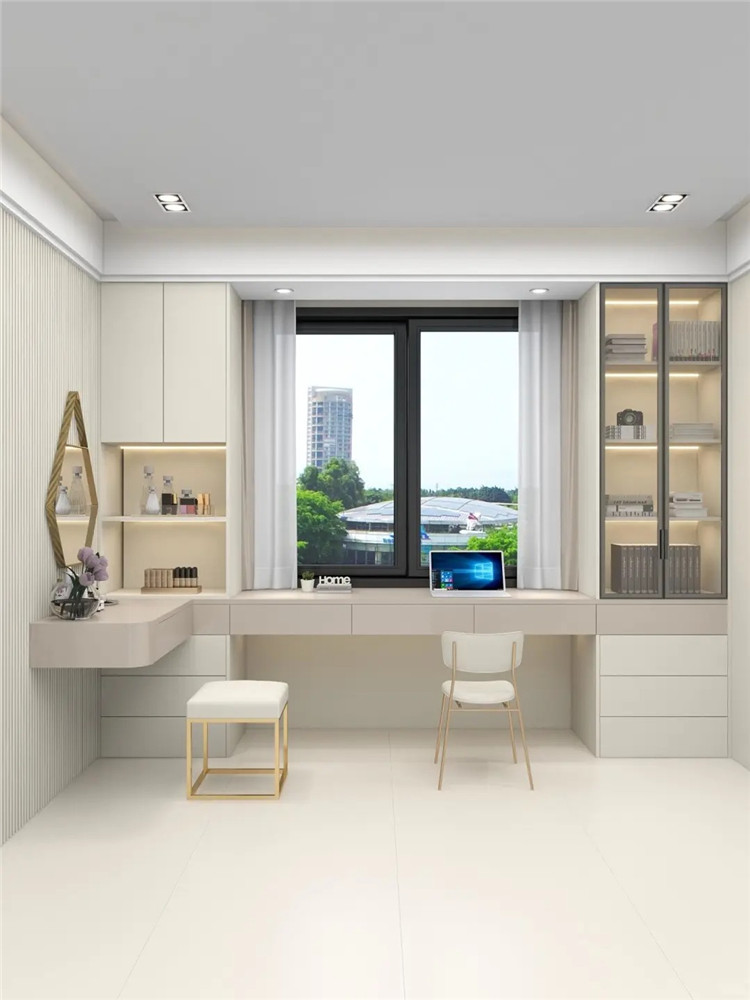 既满足了梳妆的需求,又兼顾了休闲与收纳功能,实现了空间的多重利用。