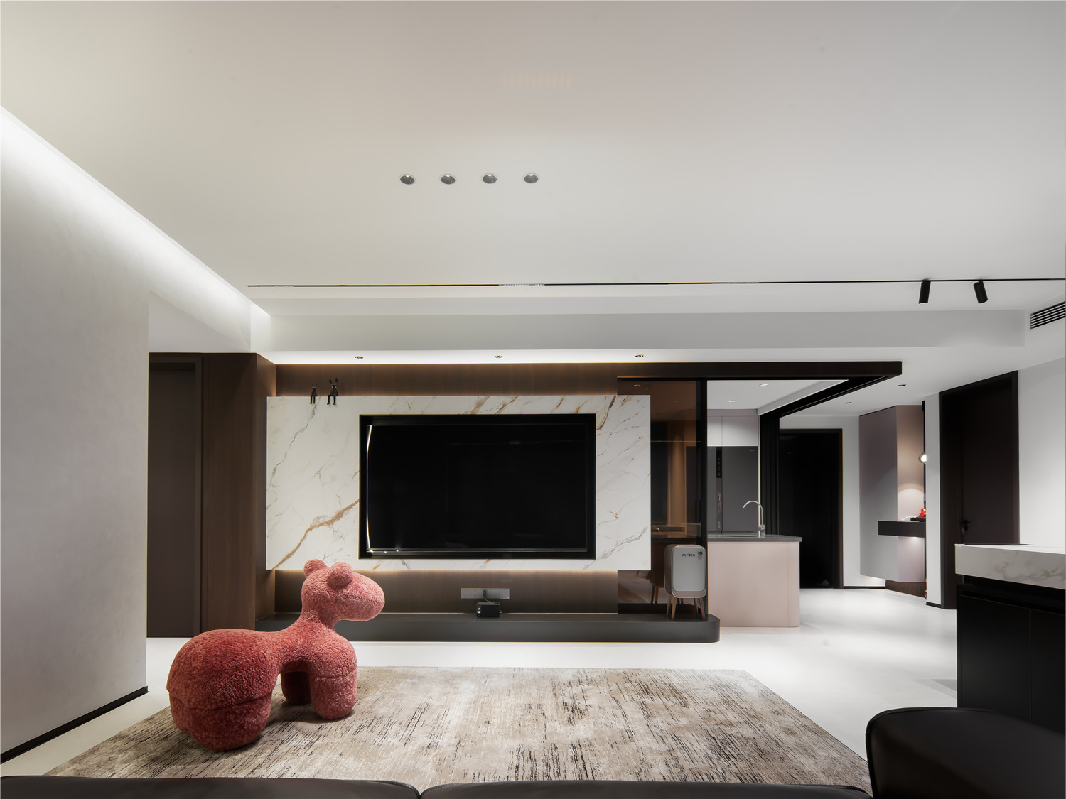 案例简介:本案例业主夫妇对生活充满了热情,偏爱现代简约风的文化,因此在进行家居设计的时候希望设计师能够使用最简约的元素打造出格调感。而在与业主深入交流后,设计师了解到这对夫妻平常最大的兴趣爱好就是读读书,因此在进行空间规划的时候预留了一个专门的书房。同时,整体的装修风格选为现代轻奢风,以满足业主的审美需求。