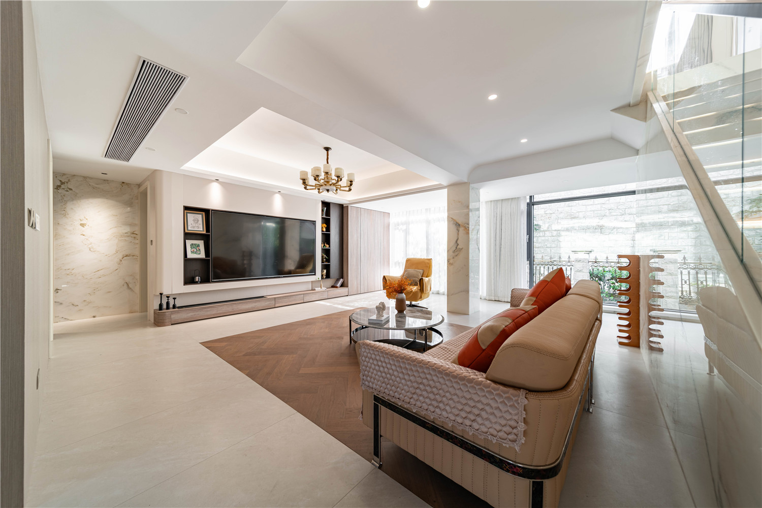 阳台空间采用大面积玻璃进行隔断,确保安全的同时有效提升空间观赏性能。