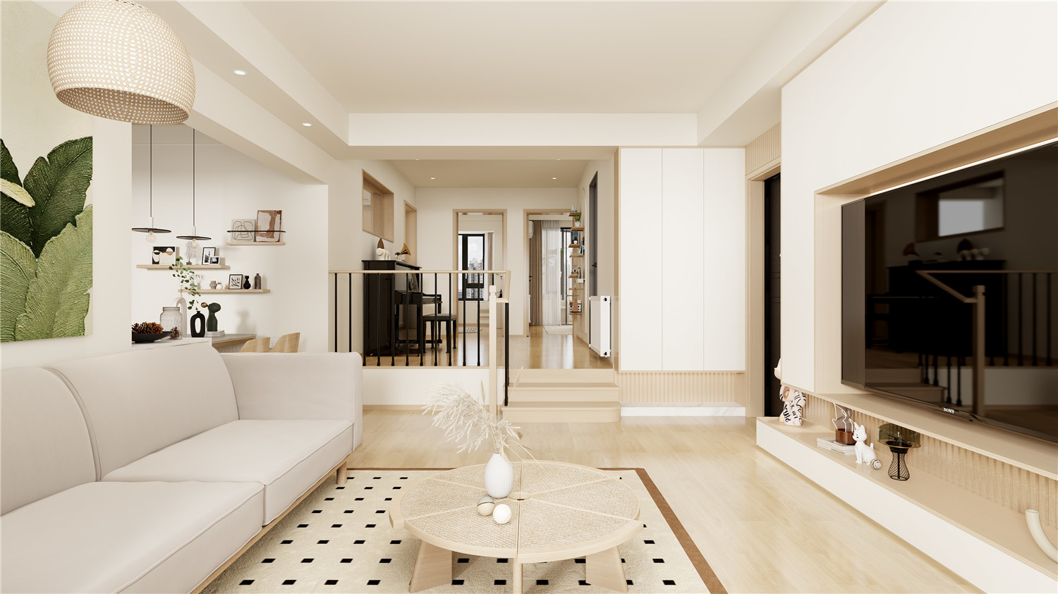 过道增加无灯具的采光设计,在增强采光的同时提升空间明亮度与视觉宽敞度。