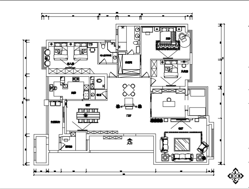 广电兰亭珑府的这套175㎡的四居室房屋其实户型相对比较合理,并没有出现各种难以利用设计的角落,因此空间的设计重点将在如何满足多子家庭的起居使用需求与如何呈现新中式风的大气美。设计师通过利用一些带有中式风情的元素进行空间装饰点缀,强调中式所特有的韵味美,同时利用多个嵌入式设计来提升空间的利用率,避免房屋看起来过于的压抑、局促。
