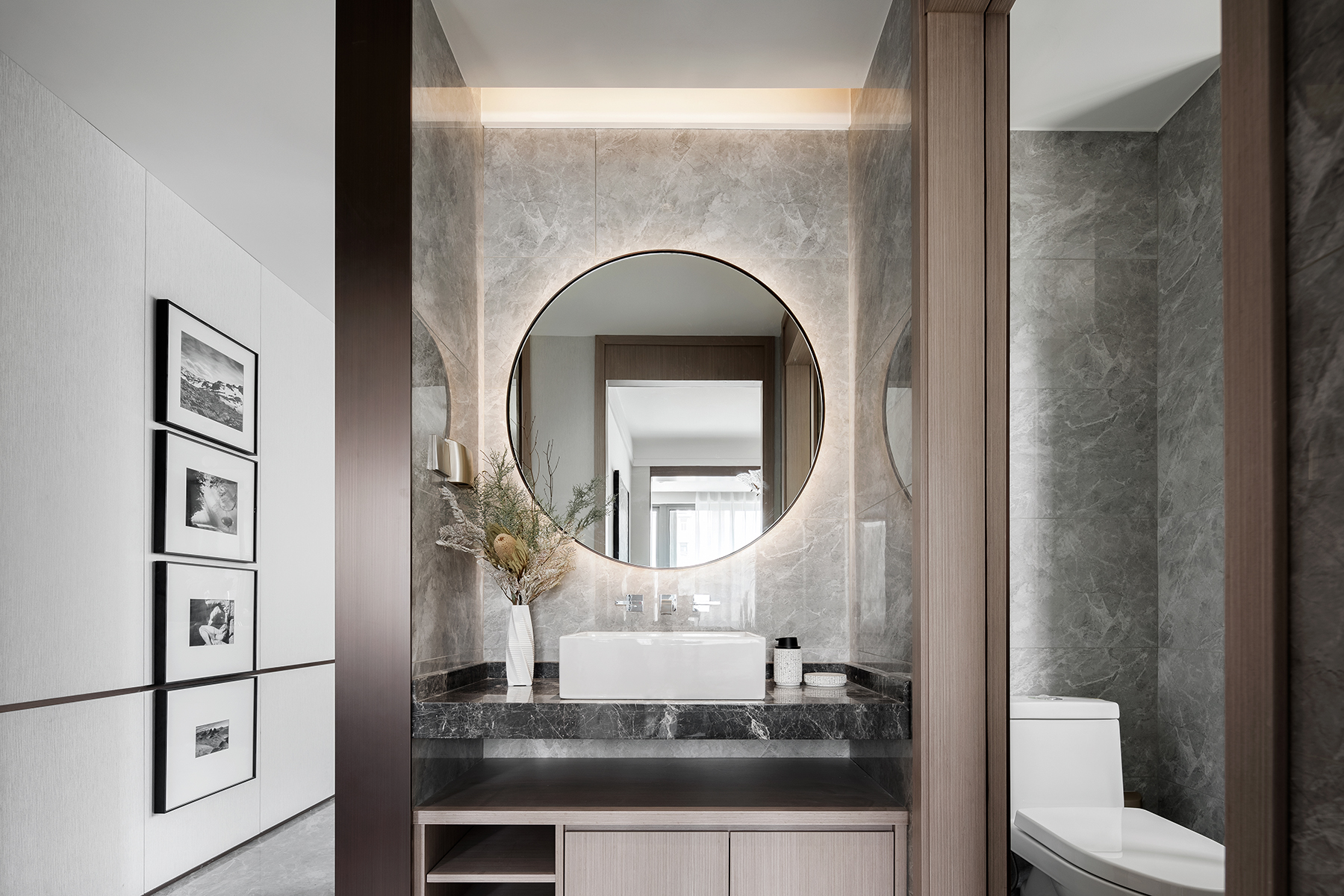 本案专为都市新女性度身设计。消费对象的定位是出生于八十年代的、生活在三环内的都市时尚女性。她年轻,骄傲而矜持,自我欣赏并钟爱舞台,追自由前卫的个性同时又享受着生活。镜面的影像令空间伸延,粉紫色软织物系统配饰以神秘、温婉的风格表明女主人的身份。