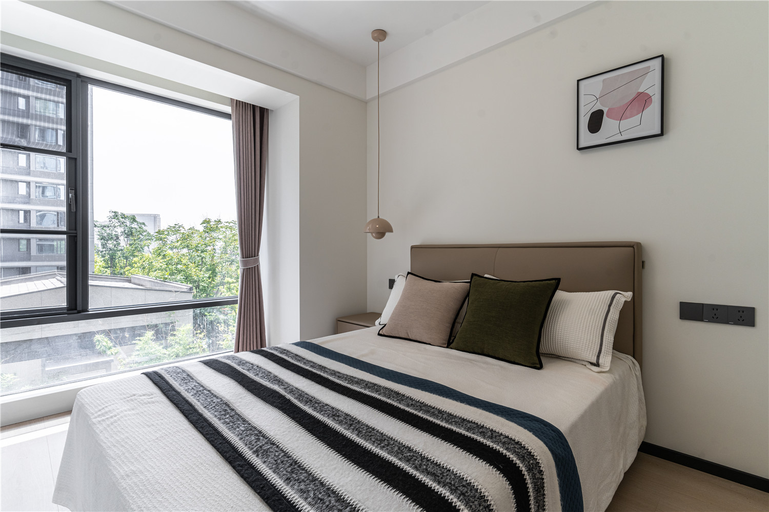 卧室的设计以淡雅清新为主题,套房设计形成了完整的生活系统,最大限度提升居者使用的舒适度,明亮的落地窗带来绝佳的采光与视野,自然的光与景亦成为室内的一部分。