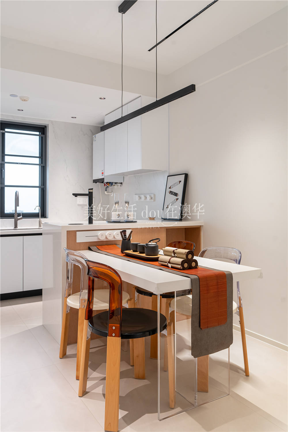 岛台作为隔断,一侧是从容的烹饪区,一侧是幸福的用餐区。同时,岛台也能作为备菜区,一物多用,尽显空间利用之高效。
