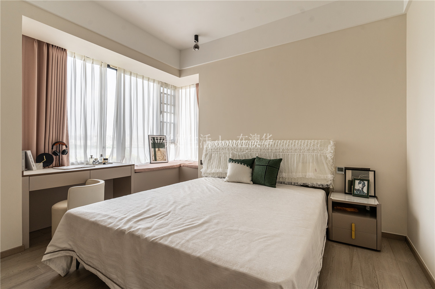 清爽的卧室让人无法拒绝,主卧作为一个套房,休憩区摒弃一切繁杂,致力于营造清透的呼吸感,予人无限好眠。