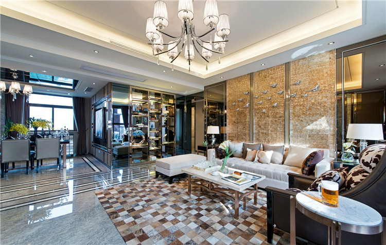这个问题很多人常会忽略,以为电视位置只要是背景墙的中心就可以了。其实,电视位置不一定非得安在背景墙的中心,反而要注意和沙发的中轴线是否在一条线上,因为后者关系到客厅内在的空间逻辑是否主次分明。